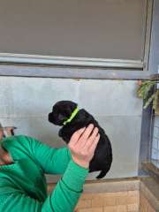 5 black labrador puppies. 3 male and 2 female. Mother is a yellow lab and the father is a chocolate lab. Puppies were born 21/8/25