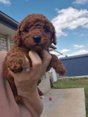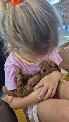 Pups are being raised in a family environment, they have a non shedding , beautiful red curl, raised inside amongst house hold noises , children , babies and other animals . They have been introduced to birds and cats .We are exposing them daily to everyday noises such as sirens , knocking , horn beeps to ensure well social , and confident pups.