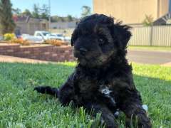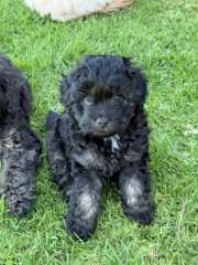 These puppies are the most adorable and loving you will ever meet. They are black and have patches of cream and brown from the mum (cavoodle)